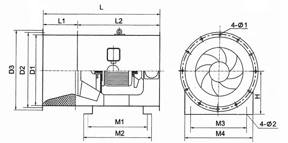 HL3-2A高效低噪混流風機安裝及外形尺寸