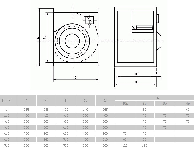 注:風(fēng)機的性能參數(shù)及結(jié)構(gòu)尺寸,本公司若有變更,恕不另行通知。