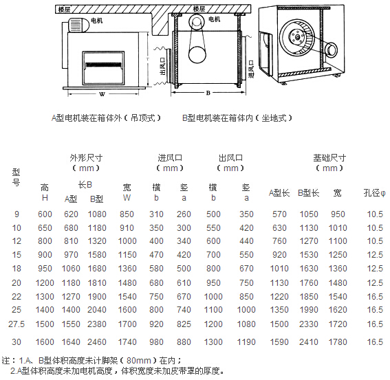 本系列產(chǎn)品有A型和B型兩種,電動機(jī)裝在機(jī)殼外的為A型,適用于輸送高溫氣體, 電動機(jī)安裝在機(jī)殼內(nèi)的為B型、適用于普通送風(fēng)、排煙使用。
