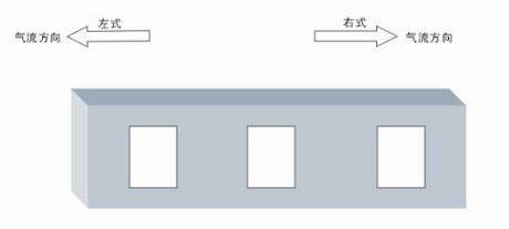 面對機組操作面,機組內氣流從左往右流動的稱之為右式機組,從右向左流動稱之為左式機組。對于立式機組,以穿過表冷器的氣流方向作為判定依據。